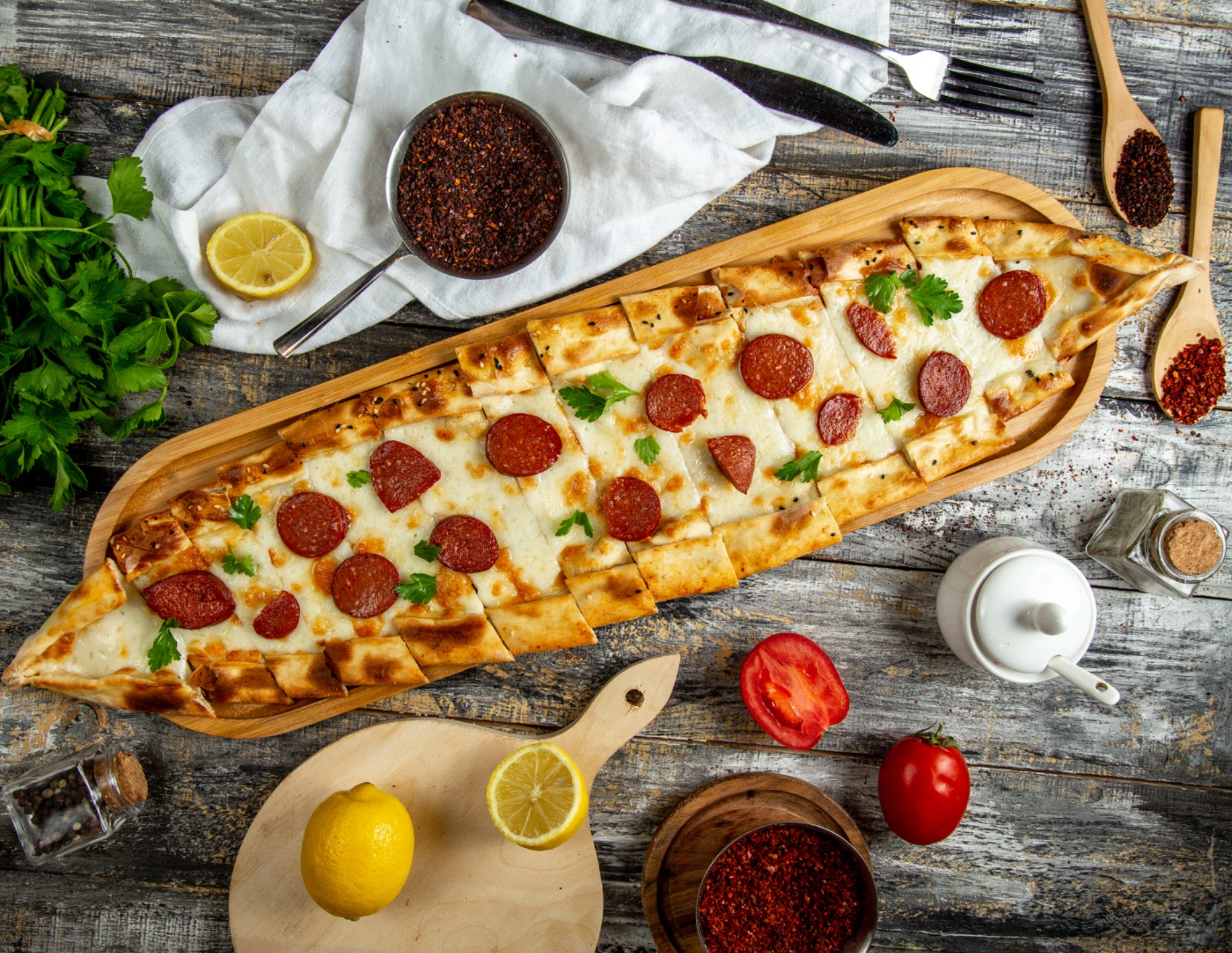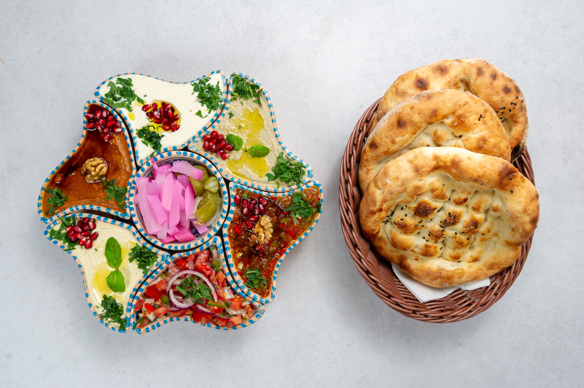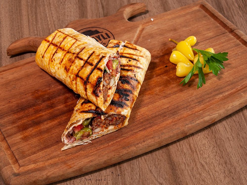 Mieszanka naszych dań z grilla: szaszłyk z kurczaka, wołowina BBQ, Adana kebab, skrzydełka z kurczaka, baranina BBQ, Abu Dhabi kofta, turkish kofta, sujuk, sałatka, grillowana papryka i pomidory.